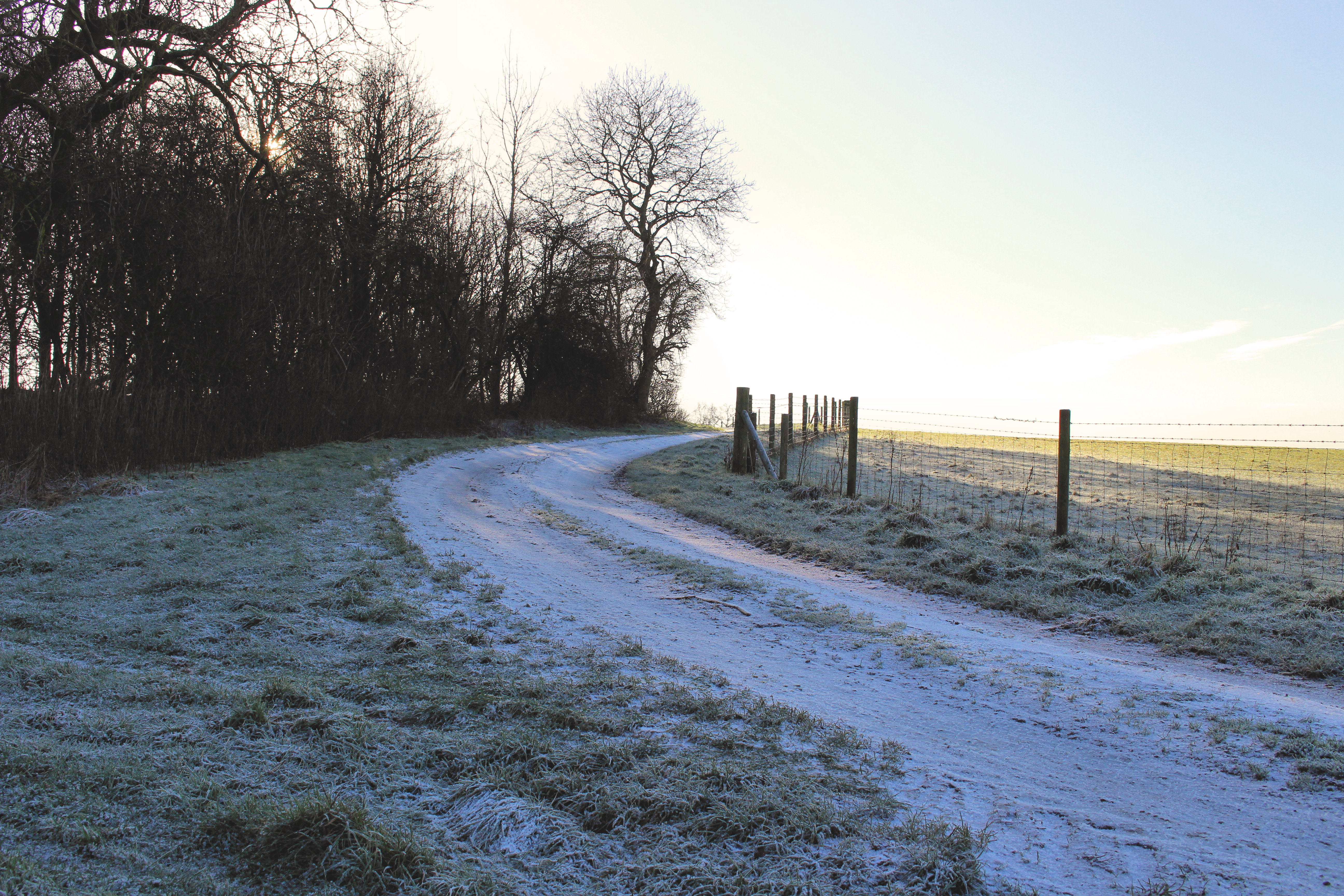 So today I persuaded Mr Midlife to accompany me on this hour long hike. All went well initially. We parked the car at the same spot I’d parked at the previous day, we climbed over the gate and set off up the hill with our dog, Alfie. It was quite a climb to the top, then the track meandered up and down the hills, past a ruined farm, until it eventually joined the Viking Way just above Tealby. Once we reached Tealby it really wasn’t clear which road or lane we should take to lead us back to our car, so we took what looked like the most likely track and kept on walking. It was very icy underfoot, and we slipped and slid along the lanes.