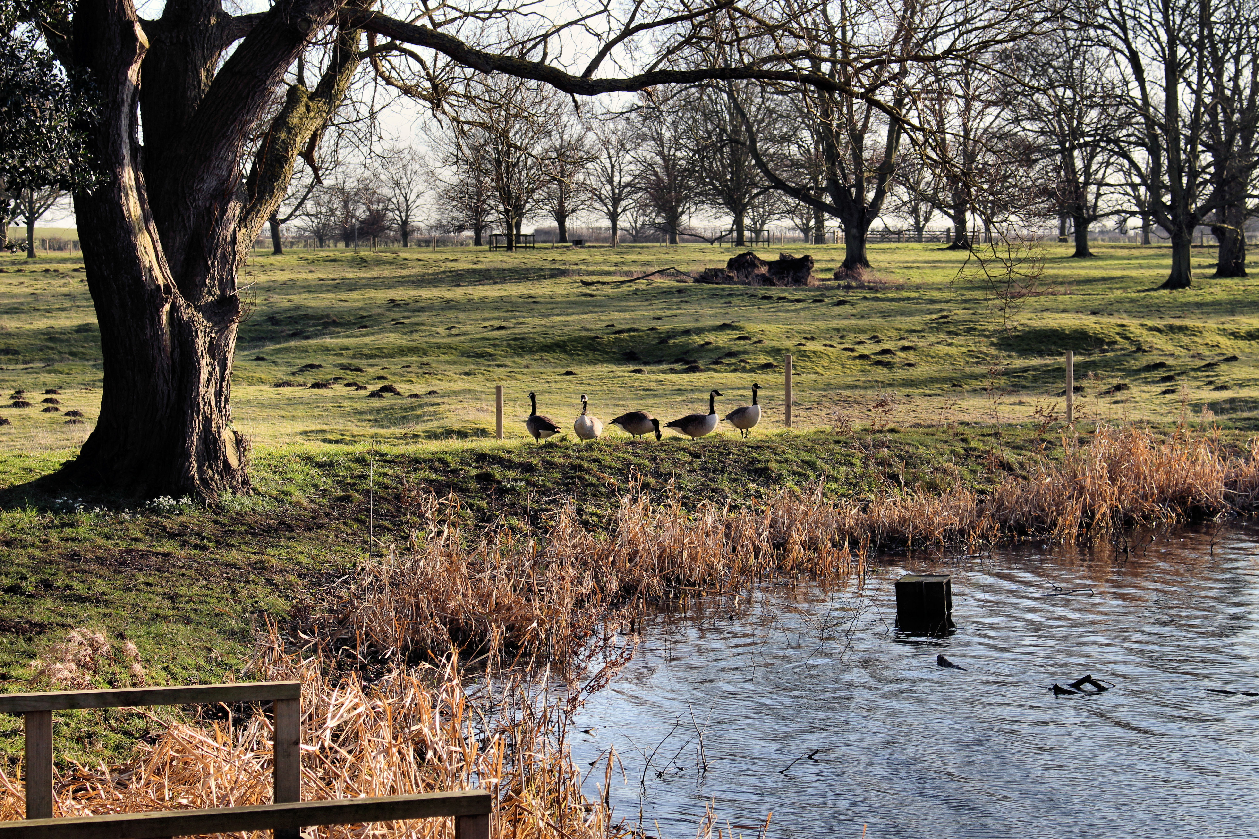 Even in February it has a lot to offer and it gave me great satisfaction to capture Canada geese on a migratory stopover feeding on the meadows and swimming in the lake. And although I did not manage a shot of them flying in or out, I was able to catch them with catkins hanging down over the field they were resting in. A couple of hours later I went home very happy with a card full of images, and having had my daily exercise too.